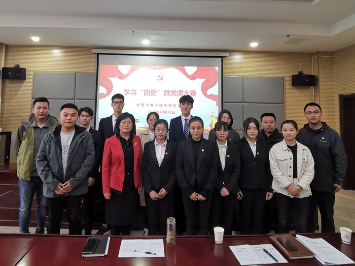 在335报告厅举办学习“四史”微党课大赛,学院党委书记李娟、副书记黄友生、各党支部书记担任评委。微党课大赛由学院团委书记宋凤楼主持。