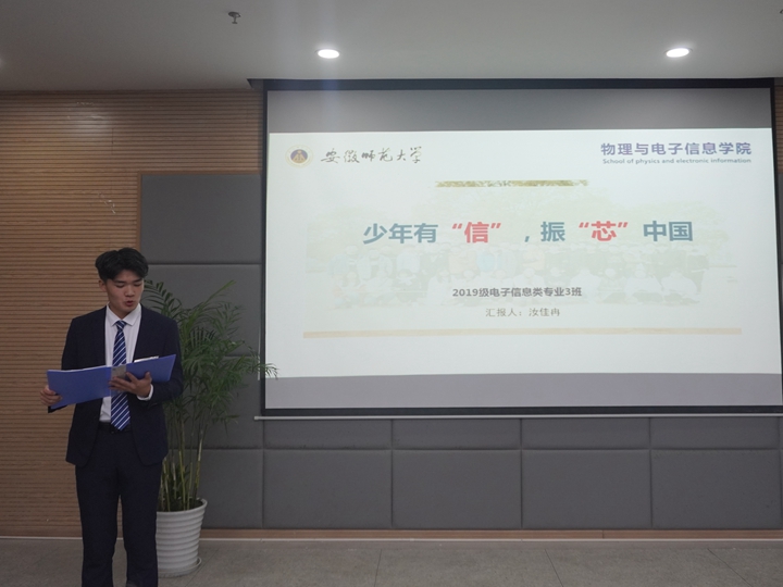 11位申报优秀集体的负责人依次上台汇报,展现集体在组织建设、党团建设、学风创建、思想建设等方面的创建情况和育人活动。18电子1班以“芯青年遇上奋进新时代”为主题,从“奋进芯青年”“阳光芯青年”等4个方面展现18电子的“阳光芯”青春;18物理2班以思想建设为主旋律、学风建设为主课堂、社会服务为主阵地、个人风采为主活力,做新时代师大物理人;18通信2班团支部追求“通信时代、青年无畏、青春无悔”理念,从组织建设、党团建设、学风建设、通信风采等方面打造团结友爱、活力四射的团支部;18自动化1班团支部从规范班级管理、细化精神家园、注重学风建设、创新班级特色4个方面汇报,怀揣工匠精神,努力做优秀“自动化人”。各参评集体展现出的进取之心、良好氛围、创新举措和丰硕成果得到了评委老师和学生代表的一致肯定。