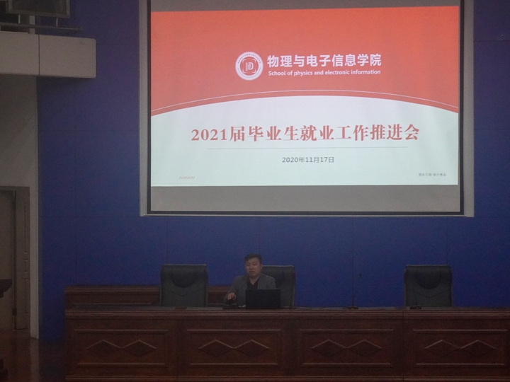 在敬文图书馆报告厅举办2021届毕业生一“研”为定考研冲刺辅导暨就业推进会。考研辅导专家段鹏越担任主讲。学院党委副书记黄友生、2021届毕业班辅导员宋凤楼、张杰以及全体2021届本科毕业生参加会议。会议由宋凤楼主持。