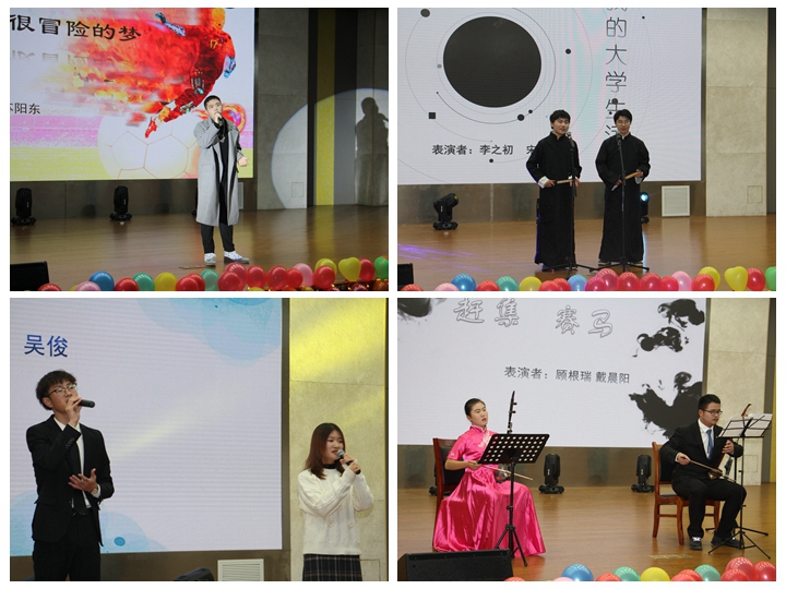 不忘初心,追梦启航。优美的旋律回响在会场的上空,一曲《那些你很冒险的梦》饱含深情,带着我们回想过往,仿佛看到了一位逐梦者铭记初心,勇敢前行的背影。幽默诙谐的相声表演《大学生活》用风趣的语言展现了稚嫩的脸庞怀揣着梦想,进入一个崭新的天地,从懵懂到成熟,不仅是岁月的变化,更是能力的提升。