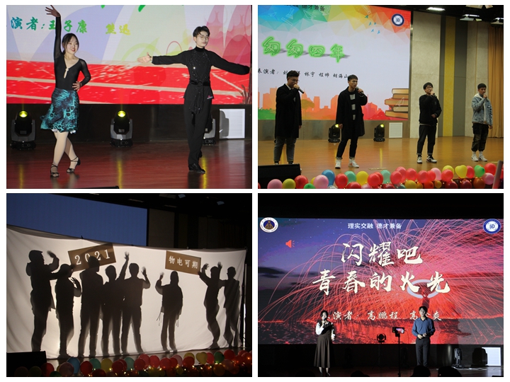 不负韶华,未来可期。舞台剧《光影物电》采用光影的手法,记录了从高考结束到考研这一路的点点滴滴,既充满生活气息又令人万千感慨。朗诵《闪耀吧,青春的火光》字字铿锵,提醒所有为梦想奋斗的同学们相信自己,有梦就追,永远朝阳,在师大的舞台上绽放青春之花!