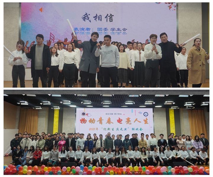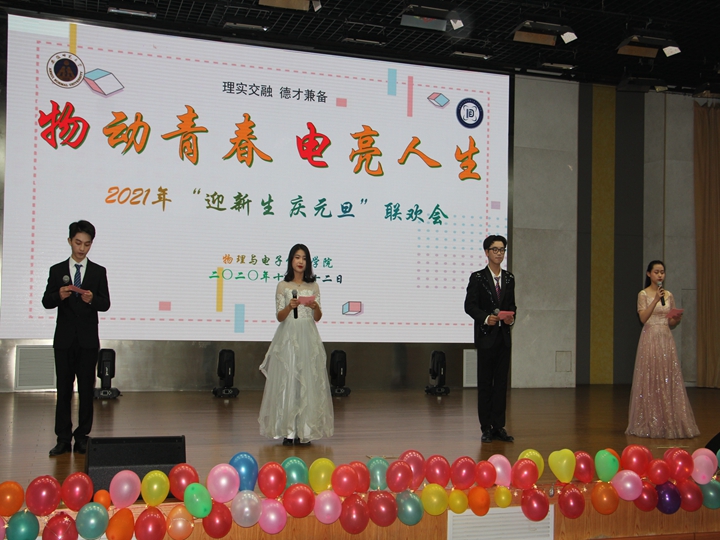 2021年“迎新生庆元旦”联欢会在花津校区理化大楼报告厅举办。学院党委书记李娟、党委副书记黄友生、副院长许新胜、团委书记宋凤楼及师生代表齐聚一堂,共同欣赏了这场视听盛宴。