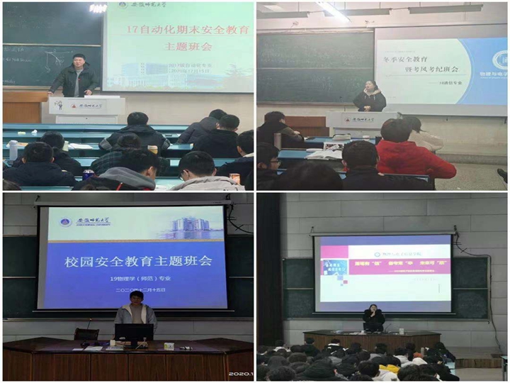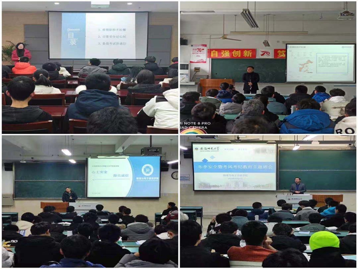 据悉,学院高度重视各类安全教育工作和考风考纪建设,通过开展主题班会、文明寝室、文明班级评比、领导班子进班会等措施,把学生安全教育工作和学风建设放在心上、抓在手上、落实到行动上,严格安全责任机制,推进学院期末各项工作的稳步进行。