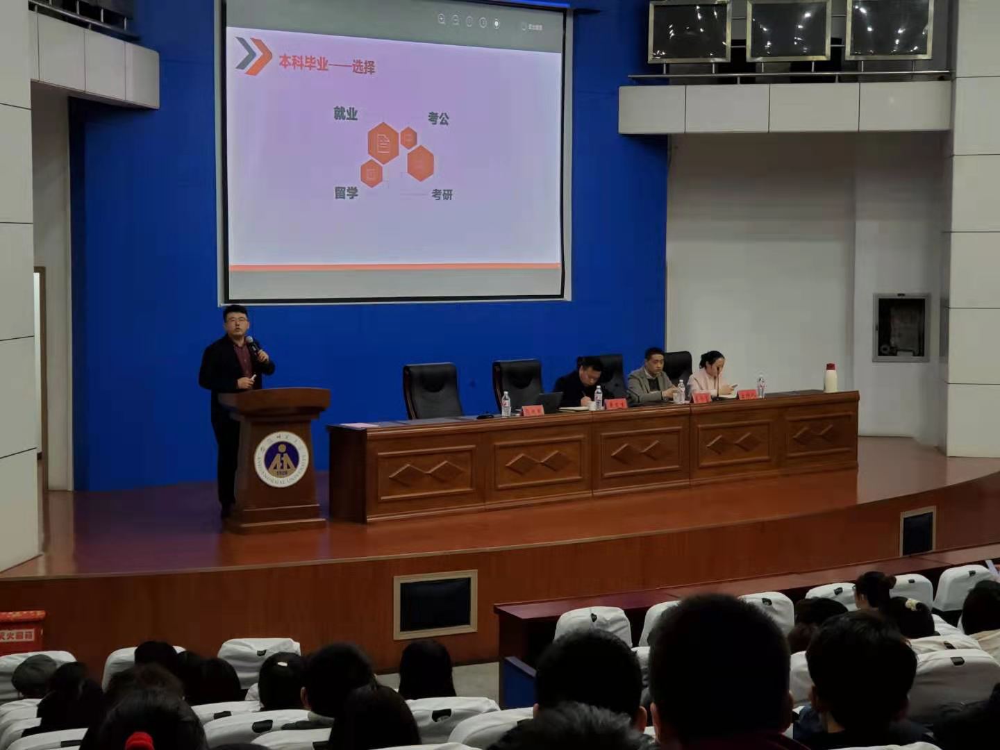 会上,考研研究专家段鹏越老师作了专题辅导报告。他从应届生就业、考公、考研、出国留学的优劣势对比的角度,充分分析了近几年考研的相关数据,从考研复习策略、时间管理、志愿填报、考研心态等方面,全面深入分析了当前考研的基本形势,鼓励同学们要坚定考研之路,正确选择学校和专业,努力实现人生的价值和追求。