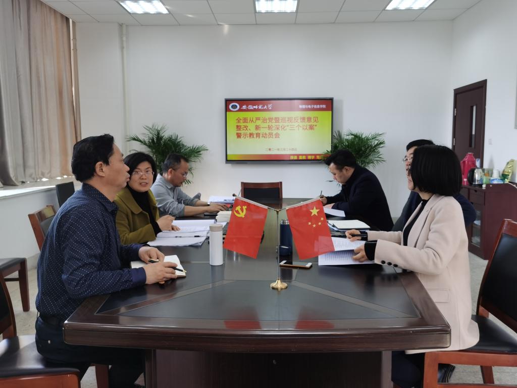 王梦晓)按照全面从严治党暨中央巡视安徽反馈意见整改、新一轮深化“三个以案”警示教育动员部署要求,学院党委先后组织召开党委理论中心组学习会、全体教职工大会,深入学习习近平总书记最新系列重要讲话指示精神,学习传达学校有关会议精神,具体部署学院全面从严治党、落实巡视反馈意见整改和新一轮深化“三个以案”警示教育工作。