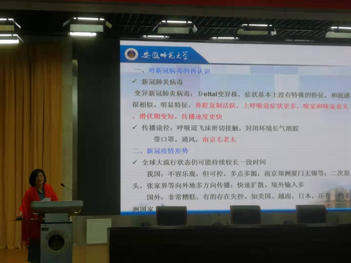 李娟对全体教职工进行了新冠肺炎疫情防控教育培训,传达了院级党组织书记及防控领导组成员会议精神。她从对新冠病毒的再认识、新冠疫情形势、如何做好疫情防控工作、学校秋季开学关于疫情相关要求等方面对新学期疫情防控工作进行了强调,要求全体教职工高度重视疫情防控工作,严格落实疫情防控要求,确保全院师生平安。