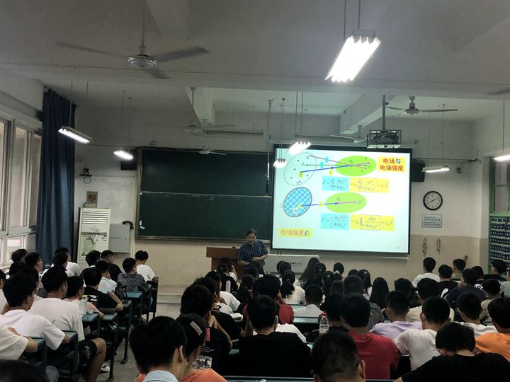 作为新学期的开学第一课,黄时中教授首先介绍了本学期的总体学习任务、考核形式和占比、学习要求、以及网课资源;随后对上学期已学过的重要知识点(一个定律——库仑定律、一个原理——叠加原理、一个定理——高斯定理)进行了系统的回顾,将学生从放假状态轻松自如地带进了物理学习状态。进入新课后,黄时中教授侧重介绍了联合应用叠加原理和高斯定理确定具有对称电荷分布的带电体所产生的电场中的电场强度的方法,结合一组典型实例,细致地解说了这种方法的关键步骤和要点,并总结出了这种方法的核心是“用叠加原理定方向,用高斯定理定大小”。在整个教学过程中,保持了良好的师生互动,课堂氛围十分活跃。