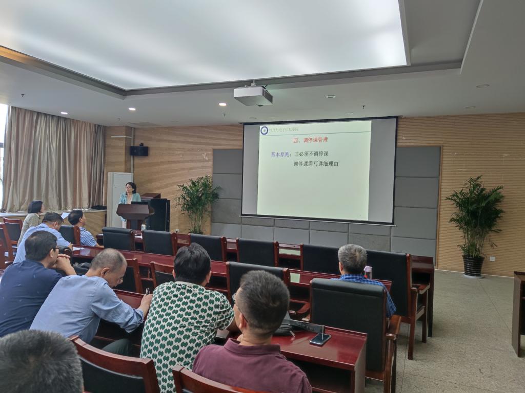 郑贤锋从教学工作、学生工作、科研工作三方面对学院前期工作作简要回顾,对开学初各项工作的平稳运行表示肯定;李娟通报疫情最新情况,要求全体教职工高度重视疫情防控工作,严格落实疫情防控要求。随后,各分管领导对下一阶段的工作安排进行了部署安排。