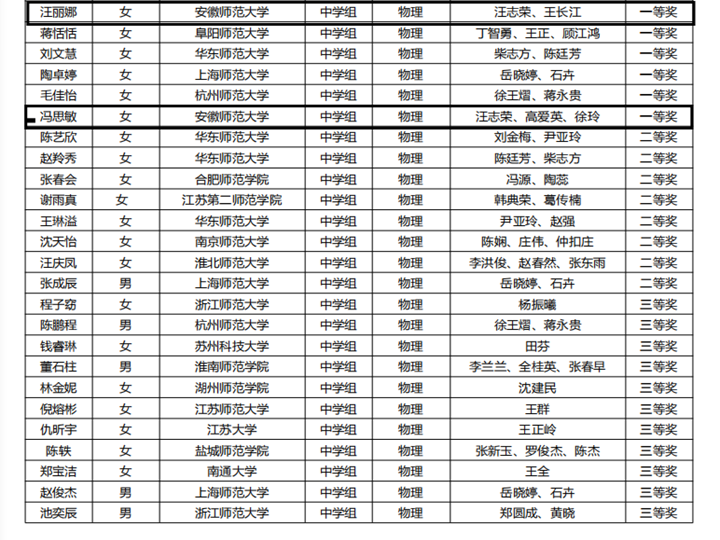 近日,第三届长三角师范生教学基本功大赛顺利结束。经过第三方专家评审,在各参赛单位全程监督下,评出一等奖110个、二等奖155个、三等奖226个。最终,由汪志荣、王长江老师指导,2019级物理学汪丽娜同学课题《电容器的电容》项目获中学物理组冠军(一等奖排名第一);由汪志荣、高爱英、徐玲老师指导,2019级物理学冯思敏同学课题《法拉第电磁感应定律》获中学物理组一等奖。