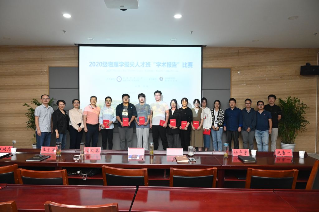 第二届物理拔尖班“学术报告”比赛在物理楼304会议室举行。校科研处副处长许新胜、院教学副院长张爱清以及专业教师黄武英、李宽国、汪延志、汤宁宇,赵春一担任评委。2020和2021级物理拔尖班全体同学观摩了本次比赛。比赛由物理学拔尖班班主任盛晓伟和2020级首届物理学拔尖班同学代佳玉共同主持。