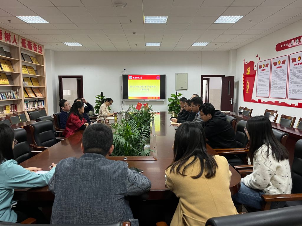 在310会议室召开了2022年新进教职工入职培训暨新进教职工第三层次培训会,会议由党委书记李娟支持,学院院长郑贤锋、教学副院长张爱清、行政副院长张其芳与11位新进教职工参加了会议。