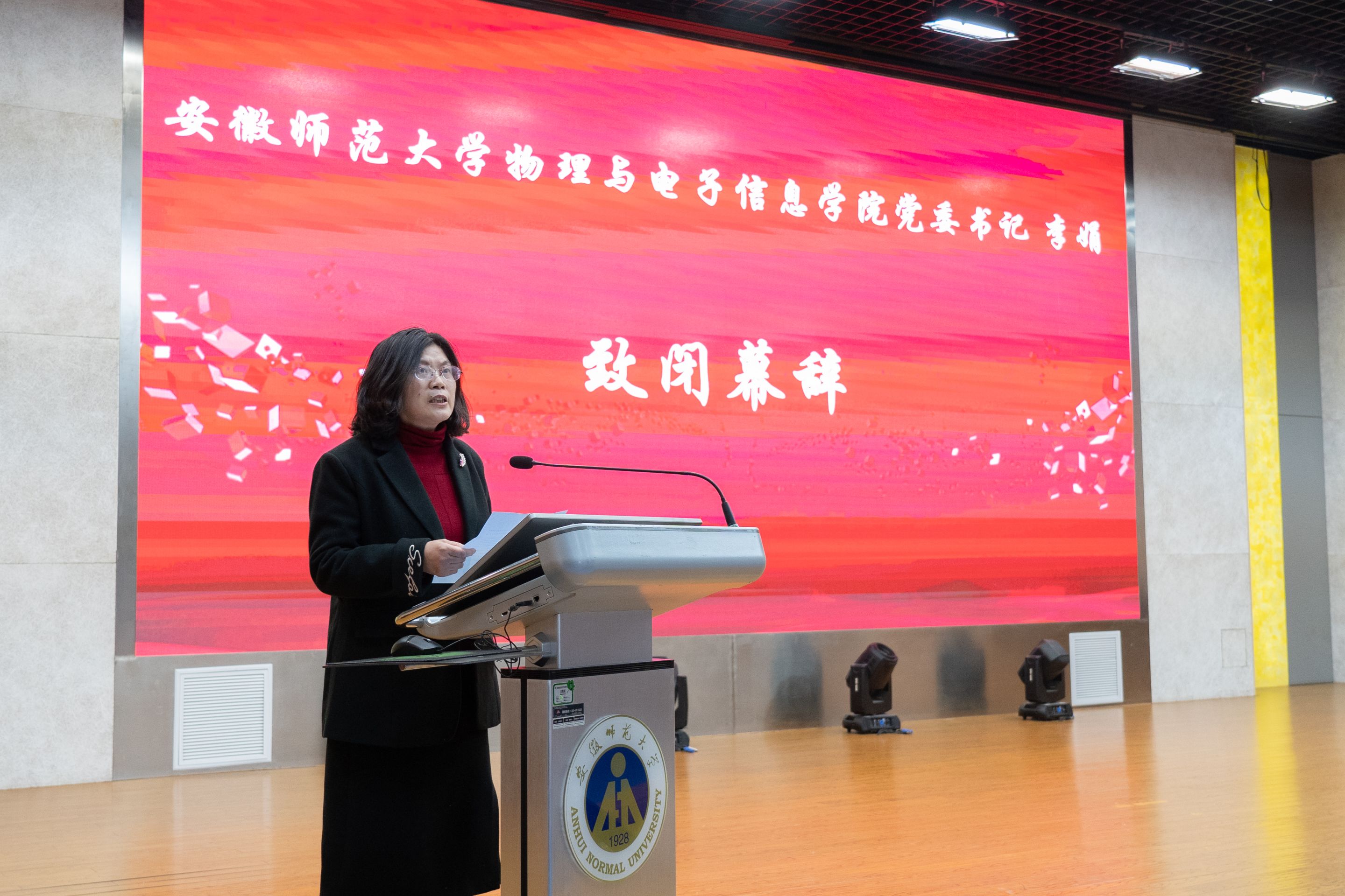 党委书记李娟致闭幕辞。她对2023年安徽省大学生物理学术竞赛成功举办表示祝贺,对指导老师、参赛师生、裁判员的辛勤付出表示感谢,对我省涌现一系列创新型人才表示欣慰。并期待安徽省参赛师生在CUPT华东赛取得好成绩。闭幕式结束后,举行了颁奖仪式。2023年安徽省大学生物理学术竞赛圆满落幕。