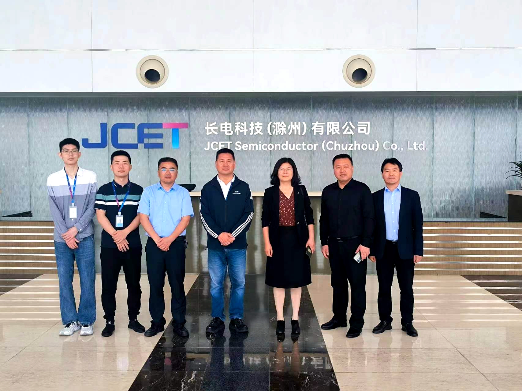 党委书记李娟、党委副书记黄友生、通信工程专业负责人冯友宏以及辅导员一行前往国家级滁州经济技术开发区,在经开区党工委委员、管委会副主任金娟、王再见带领下,先后参访长电科技(滁州)有限公司、滁州韩上电器有限公司。
