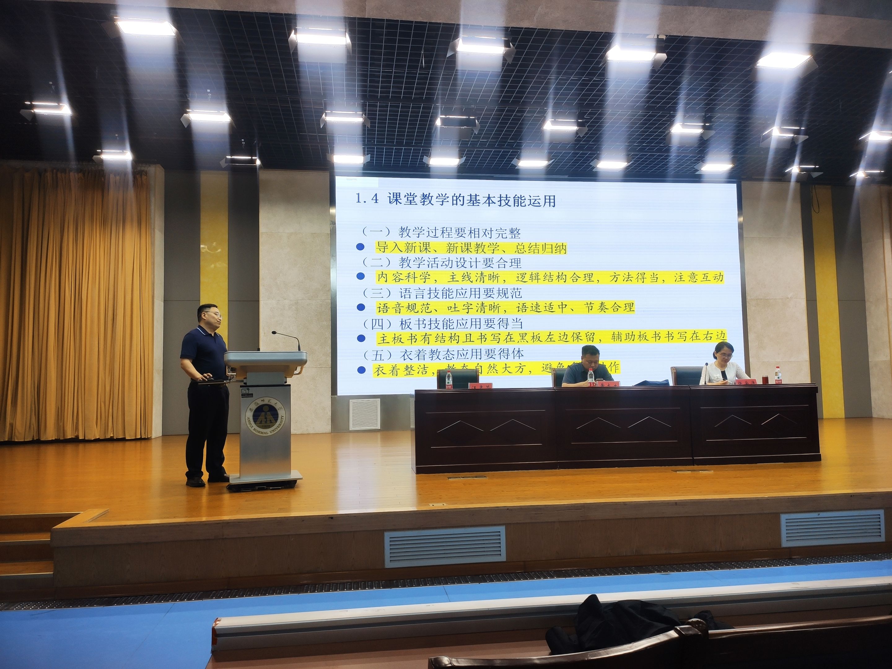 汪志荣作小学期课程安排解读和学习指导。他从小学期课程设置目的、课程内容、教学计划、课程表安排、课后辅导、晚自习以及授课教师安排等方面进行了详细介绍。并对教学实训课的学习、课堂教学的基本技能运用提出了指导与建议。他指出作为师范生,在课前要根据教学过程设计,撰写配套讲课稿;在教学实训课中要有效运用课堂教学的基本技能;在课后做好教学反思,并进行重复试讲。并希望同学们学有所获、学有所成。