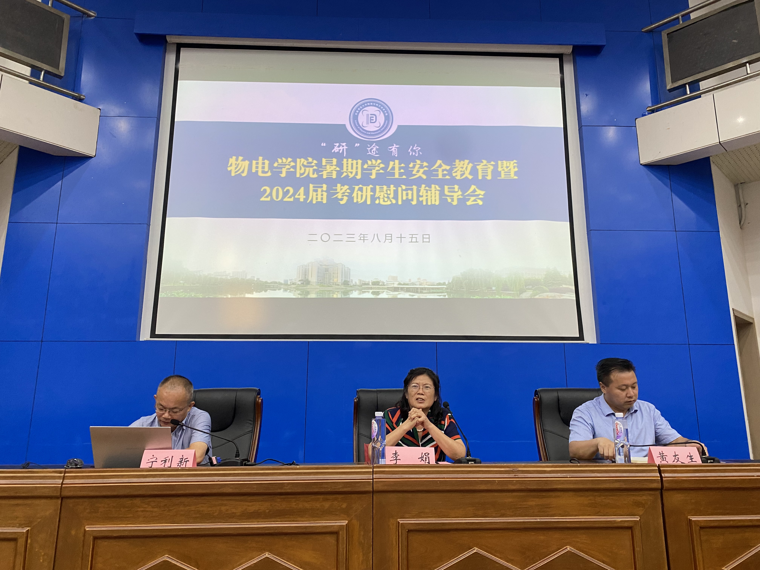 在图书馆一楼报告厅开展暑期留校学生安全教育暨2024届“研”途有你考研慰问辅导会。学院党委书记李娟、党委副书记黄友生、副院长宁利新,毕业班辅导员以及全体暑期留校学生参加本次会议。会议由辅导员张津源主持。