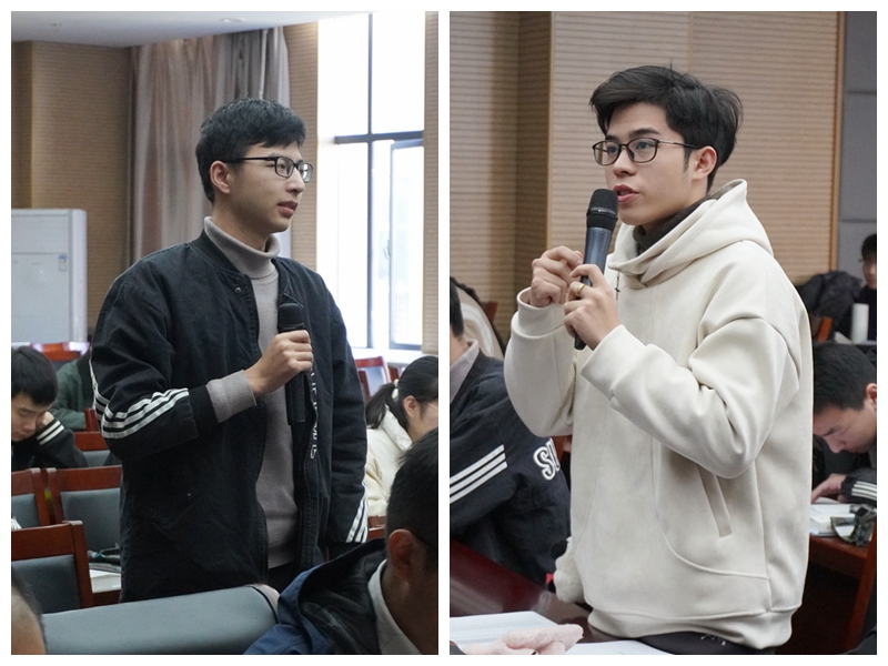 此次比赛通过现场汇报、师生提问、评委点评的方式进行。9位选手依次展示了自己的科研训练成果。其中赵永琛同学以全英文的方式汇报了他在天体物理平台的研究课题《Evidence for a compact object in the aftermath of the extragalactic transient AT2018cow》,郑圆同学结合课题《HHe和LiHe分子的全程解析势函数》将自己的部分计算和研究成果在汇报中展现,胡依健同学也结合理论物理中的相关计算推导很好的阐述了他所研究的课题《腔QED系统中的非常规光子阻塞》等等。同学们的精彩汇报以及现场老师和同学们的提问使得报告会场学术氛围十分浓厚。