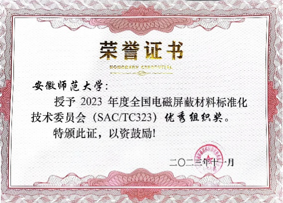 开幕式后,全国电磁屏蔽材料标准化技术委员会为获奖单位颁发了证书和奖杯。安徽师范大学被授予“优秀组织奖”、我校85Tube