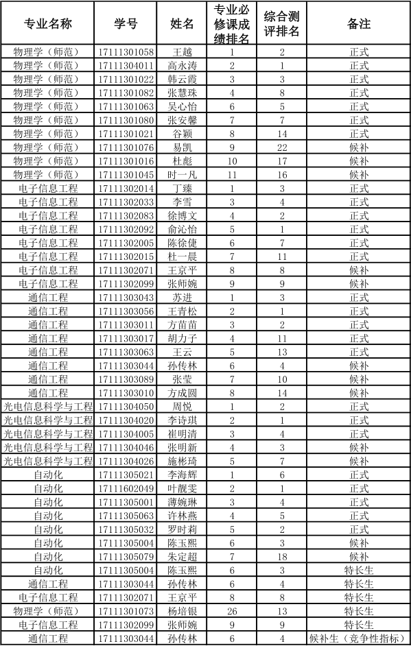 推荐2021届本科毕业生免试研究生工作正在进行。经过各专业内初选及公示,学院推免生遴选工作小组对符合条件的应届本科毕业生进行了审核遴选,拟推荐以下同学为2021届本科毕业生免试攻读硕士学位研究生人选(含候补人选)。现将名单予以公示。