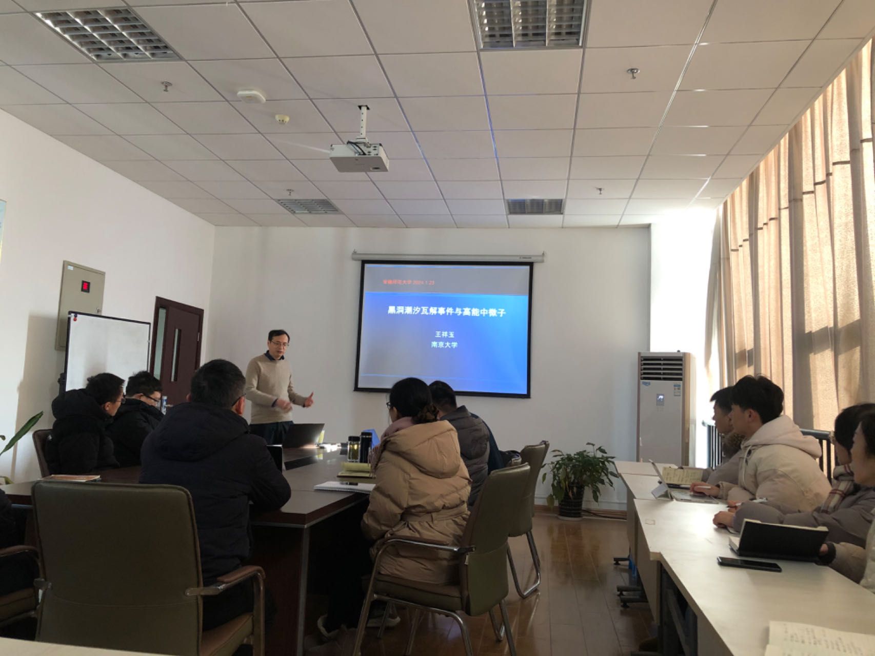 邀请,南京大学王祥玉教授于1月23日来校进行学术交流,并做了题为《黑洞潮汐瓦解事件与高能中微子》的学术报告。报告会在学院429会议室举行,会议由85Tube