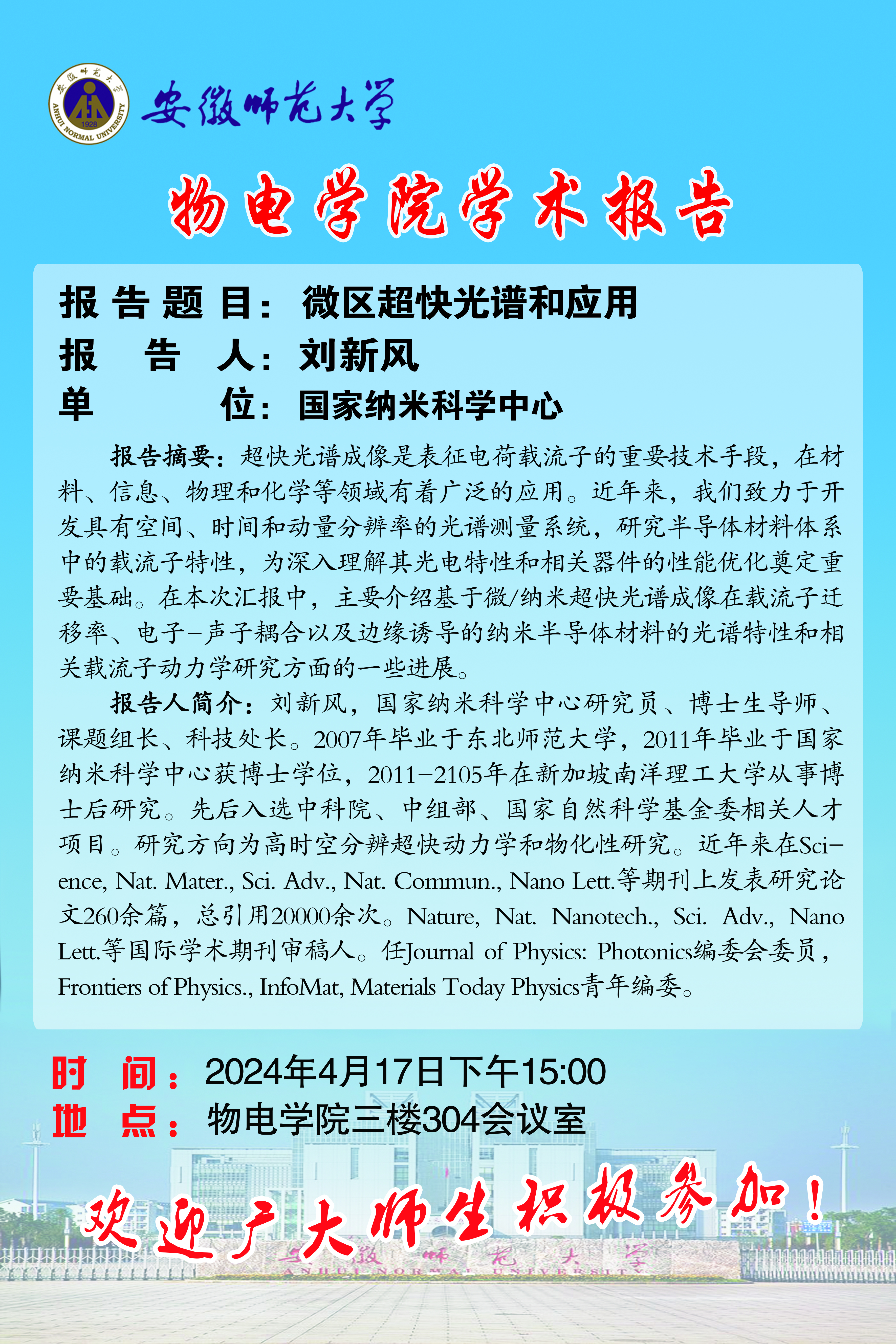 地址:花津校区-安徽省芜湖市九华南路189号 邮编:241000 电话:0553--3869894