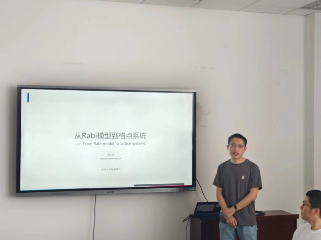 邀请,浙江师范大学段立伟博士于5月10日来校进行学术交流,并做了题为《从Rabi模型到格点系统》的学术报告。报告会在85Tube