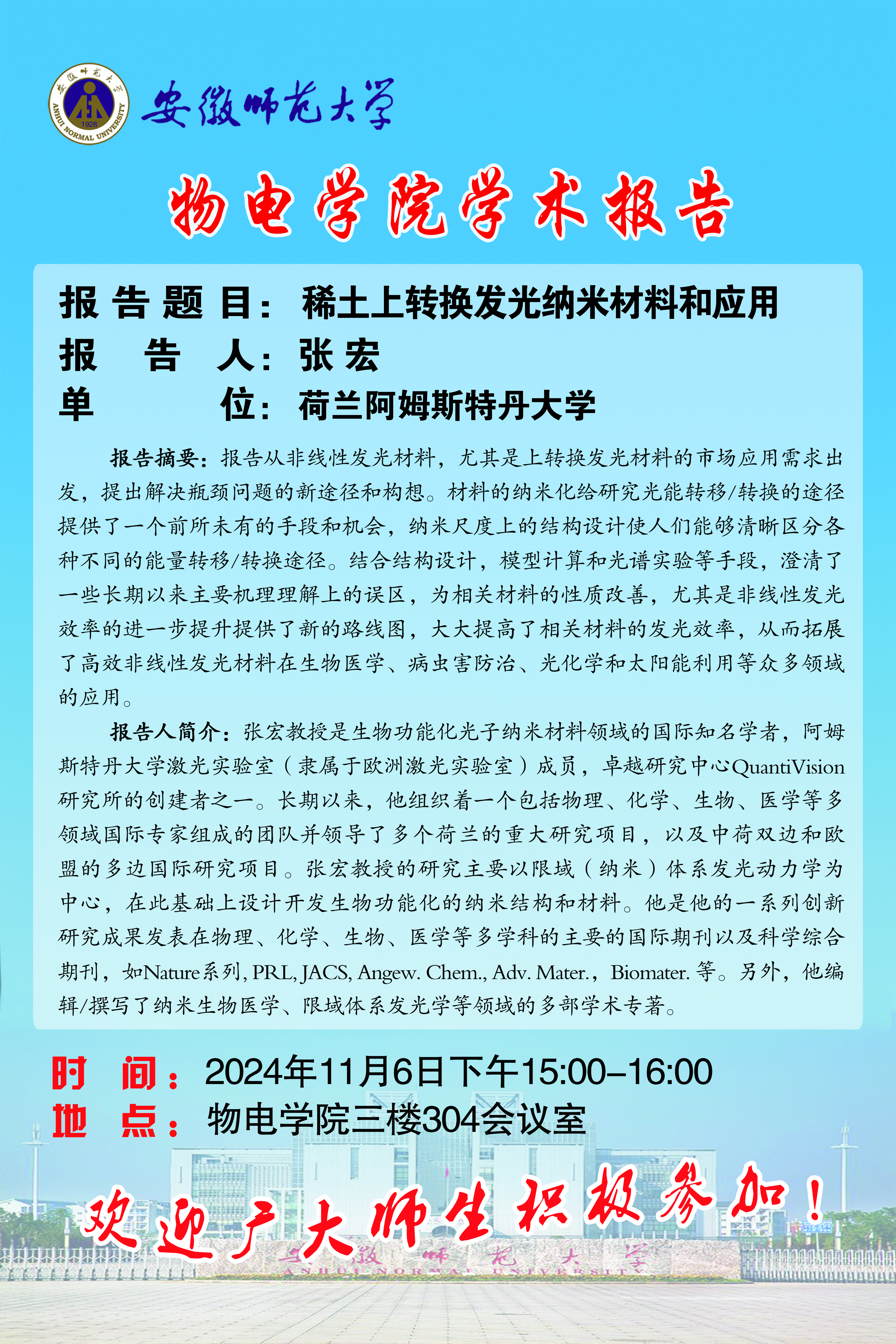 【学术预告】物电讲坛第47期:稀土上转换发光纳米材料和应用