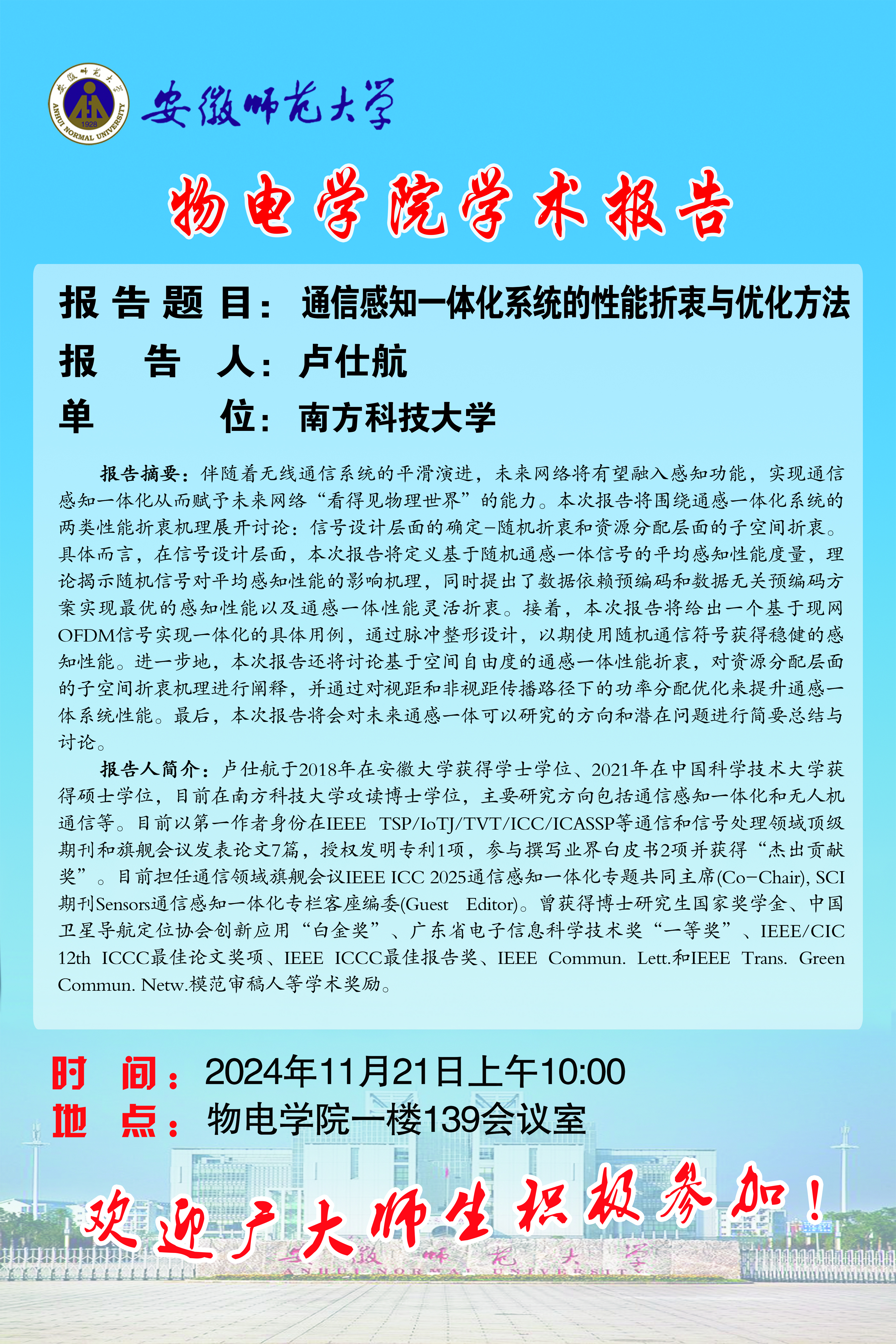 【学术预告】物电讲坛第51期:通信感知一体化系统的性能折衷与优化方法