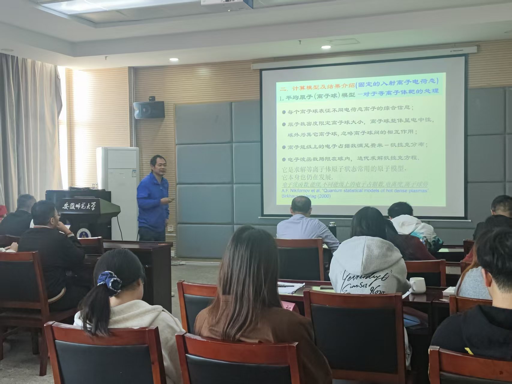 邀请,北京应用物理与计算数学研究所研究员何斌于10月29日来校进行学术交流,并做了题为《非弹性碰撞对等离子体中带电粒子能损的影响》的学术报告。报告会在学院335会议室举行,由85Tube