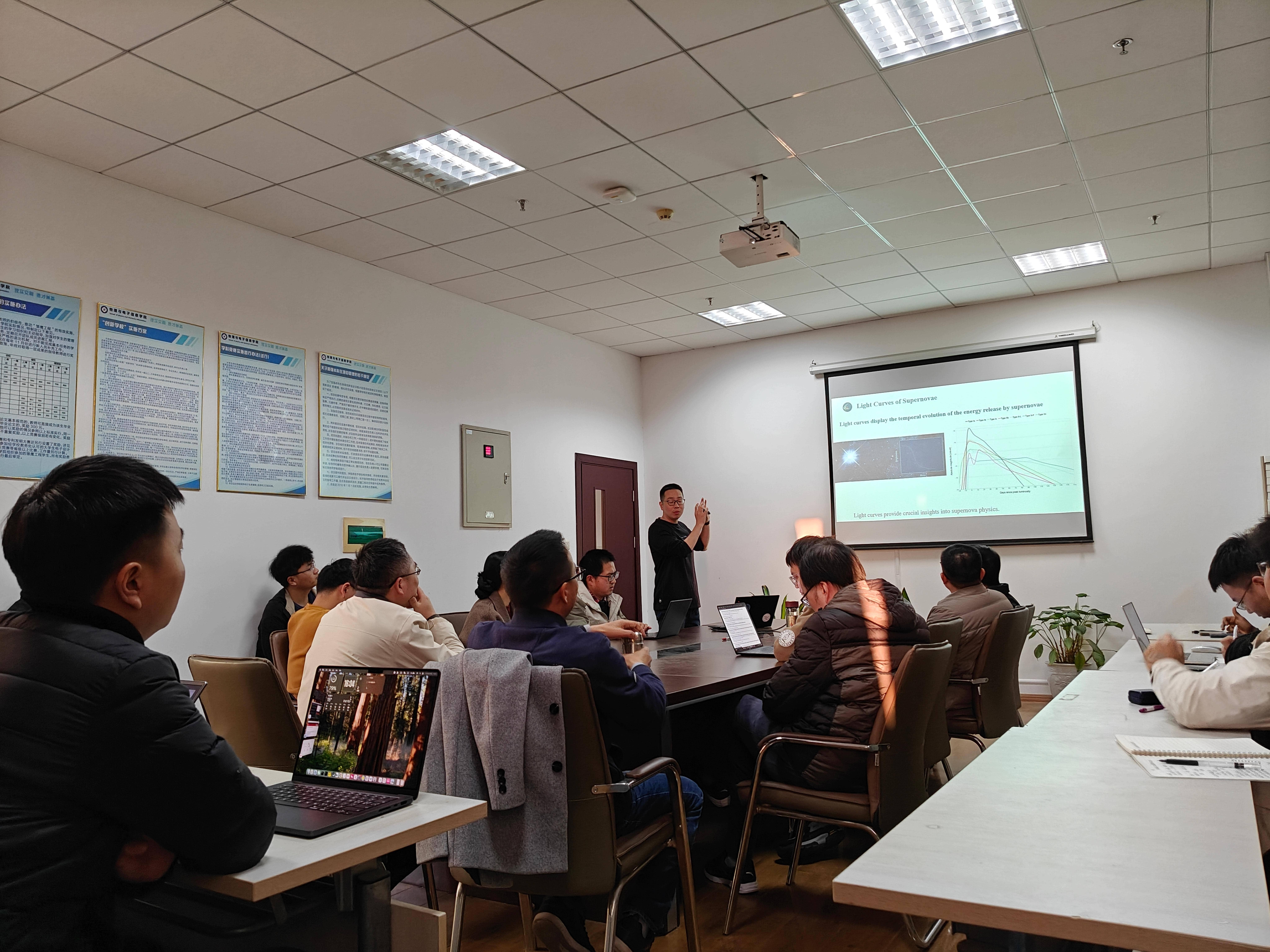 邀请,华中师范大学副研究员刘良端于2025年11月26日来校进行学术交流,并做了题为《时域天文中光学暂现源光变曲线的研究》的学术报告。报告会在85Tube