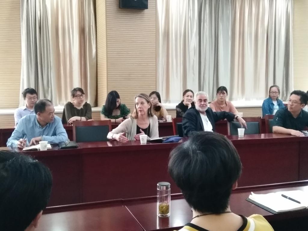 的师资队伍、研究领域、课程设置、附属学院的相关信息做了详细的介绍。随后,数学与统计学院费明稳教授通过简单易懂的语言为大家展示了自己的科学研究。最后,与会的各位老师和同学就自己关心的问题与莱德曼夫妇进行了热烈的讨论和交流。