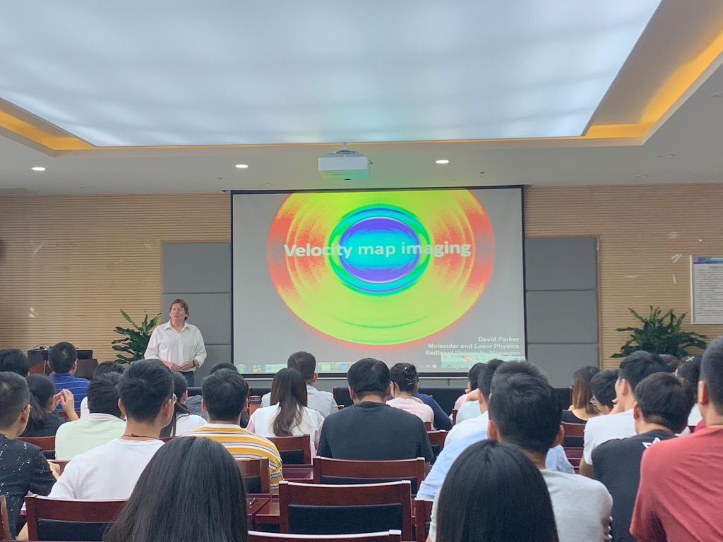 在本次报告中, Parker教授首先为大家介绍了离子速度成像技术(VMI)的发展历程及其在分子动力学领域中的应用;随后重点讲述了他们课题组将离子速度成像技术技术应用于光电离光解离动力学、非弹性散射方面的研究,以及最近开展的分子冰面上的光致脱附实验。讲座结束后,与会的各位老师和同学就自己关心的问题与Parker教授展开深入交流与讨论。