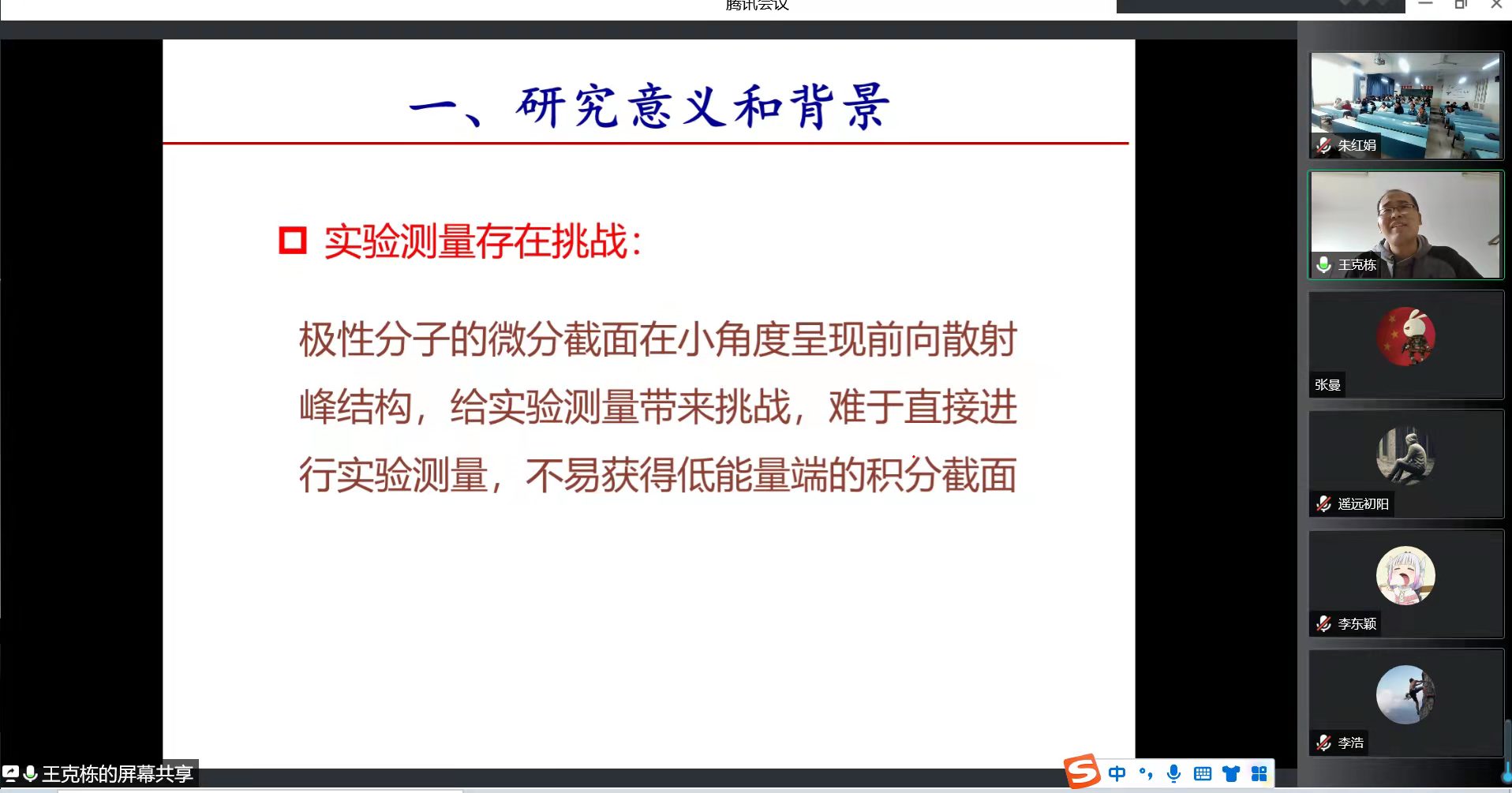 邀请,河南师范大学王克栋教授于4月30日与我校师生开展线上学术交流,并作了题为《低能电子分子散射共振态及其动力学研究》的学术报告。报告会通过腾讯会议(会议号:288795291)举行,由85Tube
