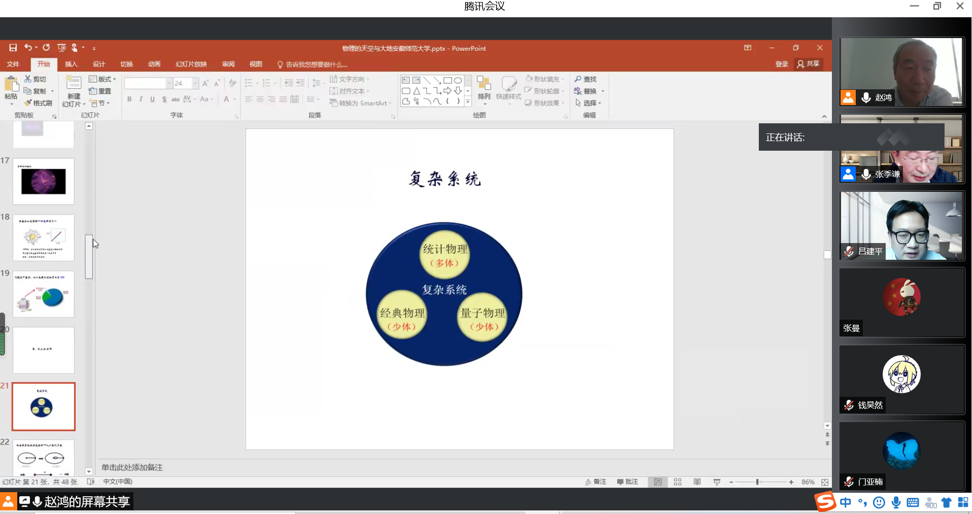 邀请,厦门大学赵鸿教授于5月4日与我校师生开展线上学术交流,并作了题为《物理的天空与大地》的学术报告。报告会通过腾讯会议(会议号:601305806)举行,由85Tube