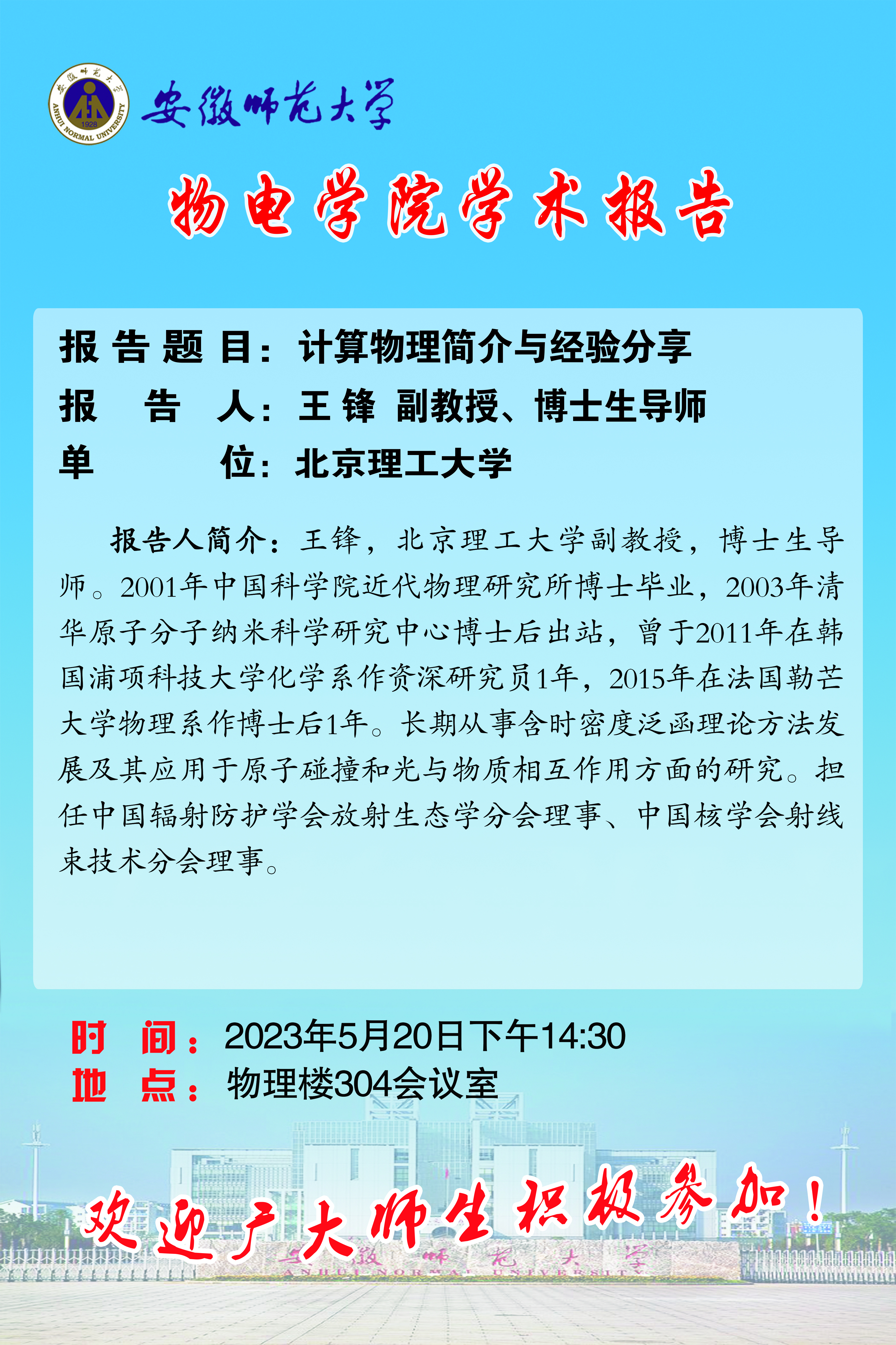 地址:花津校区-安徽省芜湖市九华南路189号 邮编:241000 电话:0553--3869894