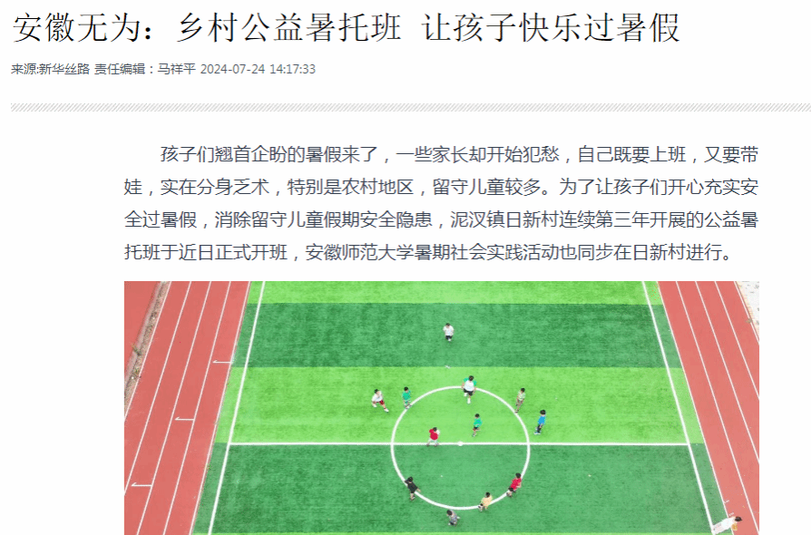 据了解,无为市泥汊镇日新村公益暑托班已连续举办三年,今年将持续至8月下旬,邀请了专业老师、大学生等参与托管服务,目前报名暑托班学生已有100余名,覆盖从幼儿园到初中各个年龄段,通过既“托”又“管”还“学”的方式,切实让孩子们快乐过暑假。