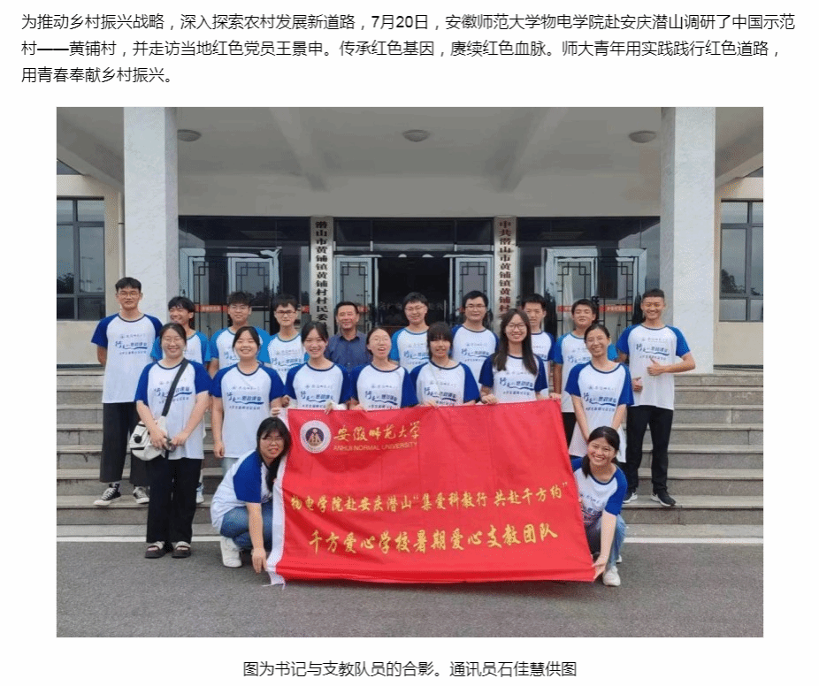 为推动乡村振兴战略,深入探索农村发展新道路,7月20日,安徽师范大学85Tube