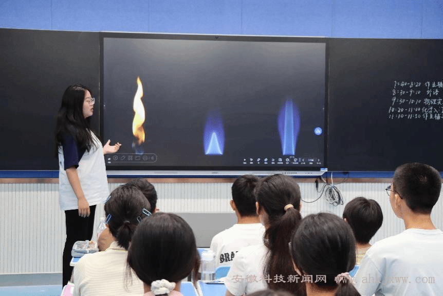 “我是从安庆望江新坝小学和中学走出来的,看到家乡的孩子我好像看到了另一个自己,我愿成为一抹红,把爱与知识的种子播撒在家乡的热土上。”支教队员代表在暑期支教开班仪式上向支教地老师、家长与学生们表达真切的实践宣言。
