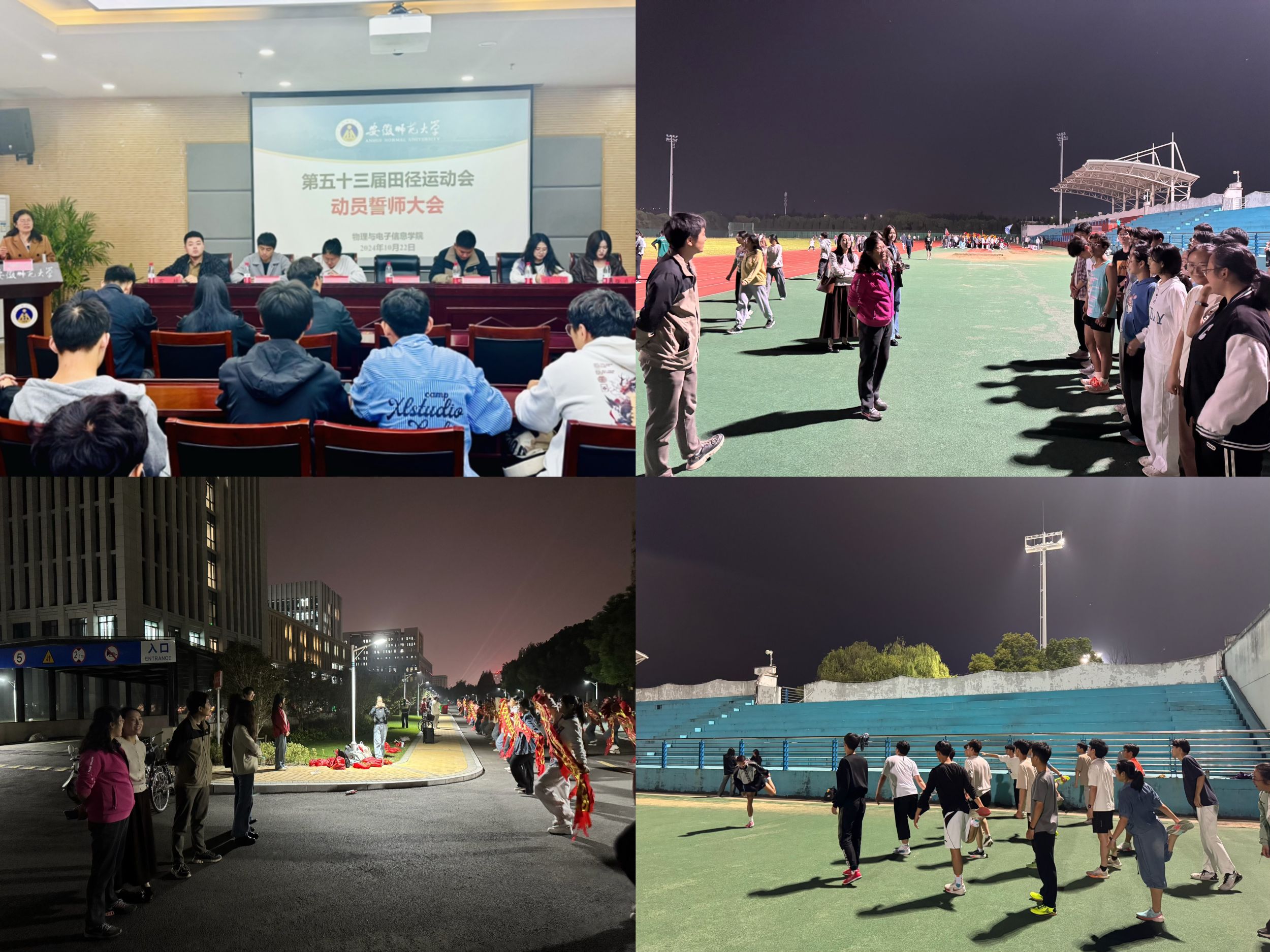 积极筹备,通力合作。学院坚持“五育”并举,高度重视体育运动工作,坚持早谋划、早准备、谋全局、抓细节。学院立足于往届的成功经验,明确分工、协调工作,制定精密的工作方案,扎实推进各项工作。学院领导多次慰问运动员、方阵队、排舞队、拉拉队等,提出了针对性的训练建议。10月22日,学院在物电楼304报告厅召开校第53届田径运动会誓师大会,学院党委书记李娟、团委书记张津源、全体本科生专兼职辅导员、教练员、运动员、学生会工作人员参加会议。会上,学生会体育部负责人宣读了学院各项目出征的运动员名单;学生会综合部负责人宣读了运动会学生会服务人员名单;运动员代表徐靖轩同学作表态发言;教练员、体育学院23级研究生杨鹏飞结合个人经历和自身经验,与运动员们交流了赛前准备、竞赛技巧、运动保护等注意事项。李娟表示,校运会是高校育人工作的重要载体和抓手,学院历来高度重视,屡创佳绩。她强调,全体运动员和工作人员要做到科学备赛,在认真总结既往经验的基础上要积极谋划、群策群力,开展一系列系统的选拔和训练工作;要做到全力完赛,全体人员要高度重视、提高认识,运动员要遵守赛事规则,赛出水平、赛出风格,顺利完成各项比赛;要做到协同助赛,服务人员要强化后勤保障,做好服务工作。