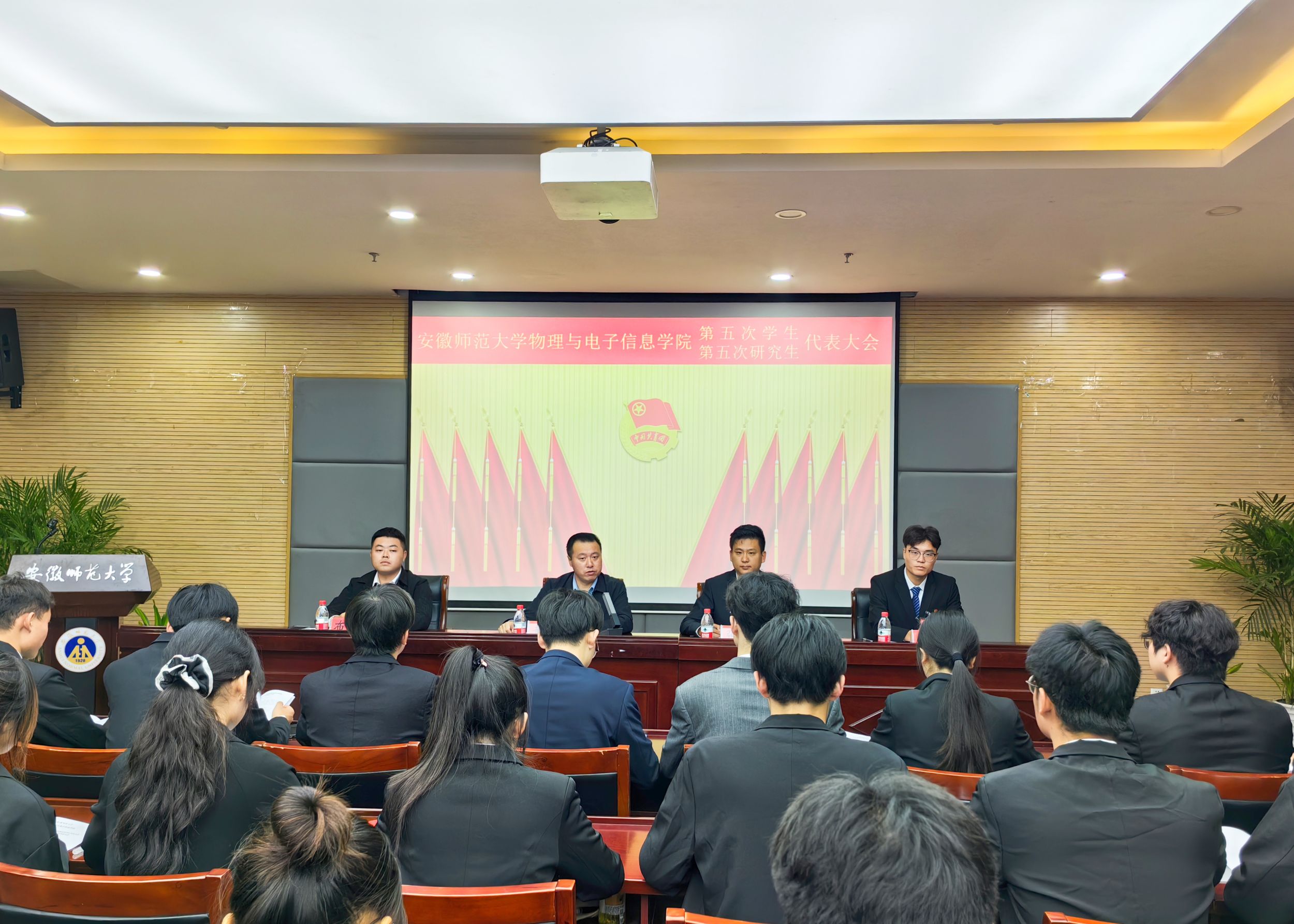 第五次学生代表大会暨第五次研究生代表大会在物电楼304召开,院党委副书记黄友生,院团委书记张津源,院团委副书记布赫,学院学生会主席团全体委员、学院研究生会主席团全体委员以及各年级本科生、研究生代表参加本次会议。