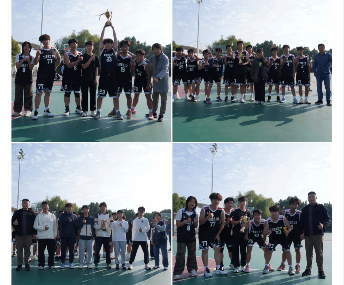 本次新生杯篮球赛进行了小组赛和淘汰赛共计14场比赛。赛场上,球员们灵活运球,一次次直逼篮板,每一次投篮都牵动着同学们的心。篮球在球场上跳动,在球员们手中传递,在空中画出优美的弧线,最终应声入网。双方队员们毫不相让,拼尽全力夺球、控球、投篮,竞争十分激烈。场边的同学们不断呐喊助威,现场掌声阵阵,气氛愈发火热。篮球赛不仅考验球员的球技,更考验球员间的默契配合,在一次又一次的比拼与磨合中,球员们之间的情谊也在不断攀升。经过激烈角逐,24级物理师范1、2班获得冠军,24级电子信息工程1、2班获得亚军,24级物理师范3、4班获得季军,24级物理师范2班姚锐获得“最有价值球员”称号,活动最后,院团委书记张津源、辅导员曹阳和院学生会指导老师布赫分别为获奖的班级和个人颁奖。