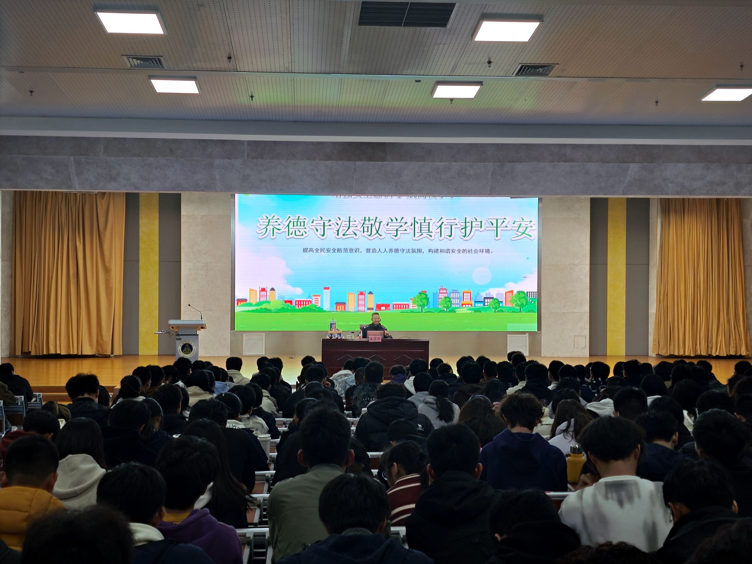 邀请弋江分局高校园区派出所副所长朱滦河警官来校作校园安全教育专题讲座,讲座由学院团委书记张津源主持,全体2024级新生参加培训。