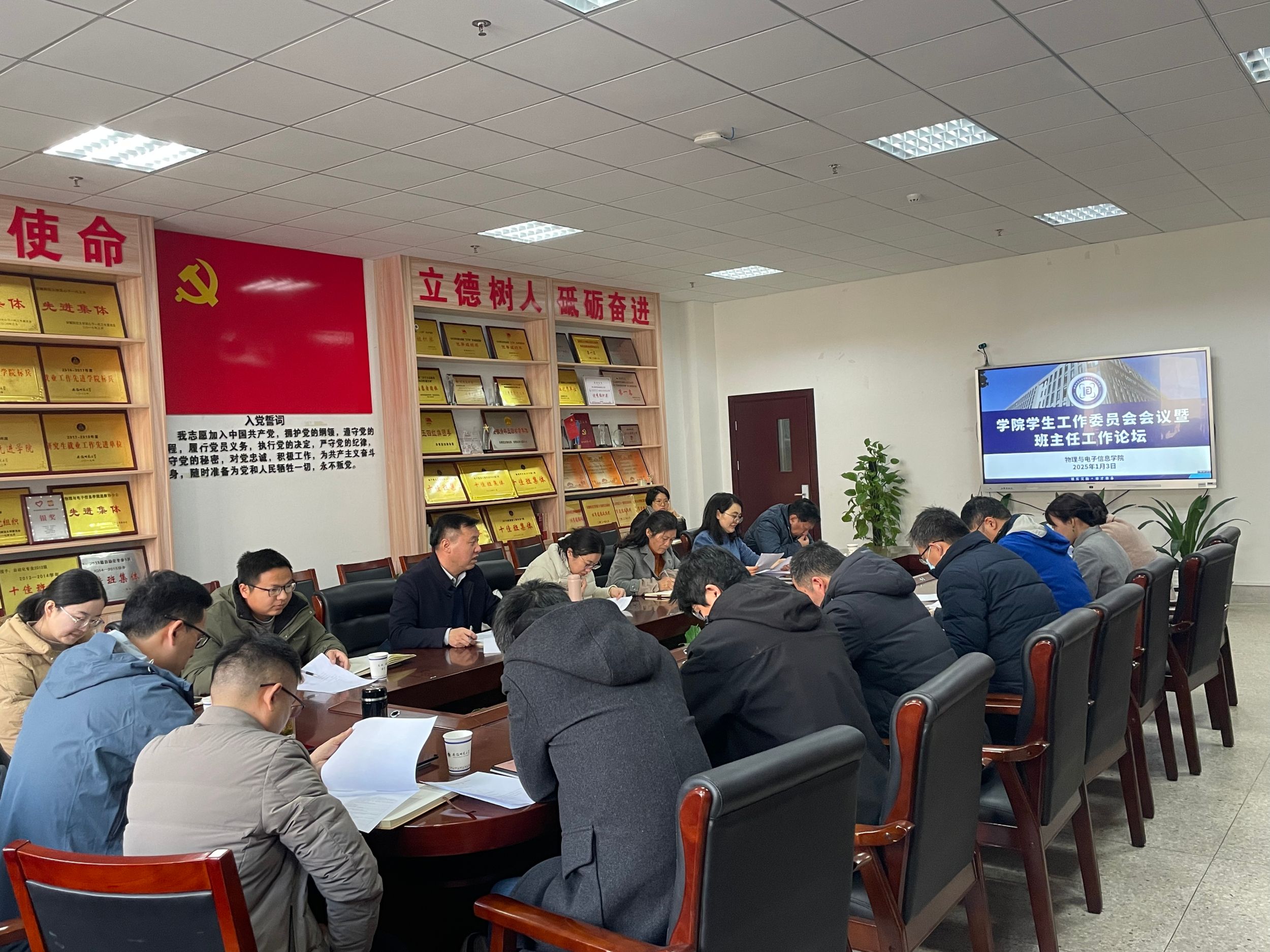为总结班主任阶段性工作,1月3日,学院召开学生工作委员会会议暨班主任工作论坛。学院党委书记李娟、教学副院长张爱清,各班班主任及全体专兼职辅导员参加会议,会议由学院党委副书记黄友生主持。会上,张爱清围绕召开班会、进班级、进宿舍、参与活动情况、一对一谈话等通报了2024年各班班主任工作情况。黄友生结合学院人才培养工作实际,布置了2025年班主任工作。与会人员围绕“护思想、护学习、护生活、护情感、护身心”进行交流研讨。李娟在总结讲话中充分肯定了各位班主任2024年下半年的工作成效,同时也指出需要加强和改进的地方。她强调,班主任要在思想引领、学业指导、学风建设、精准辅导、日常管理五个方面发力,围绕人才培养方案,加强学情分析研究,经常性进课堂、进宿舍、进活动现场和谈心谈话,既要走近学生更要走进学生,在帮助学生专业学习和人格完善的同时,增进师生情谊,实现教学相长,不断提升学院人才培养质量。全体辅导员要和班主任紧密地团结在一起,互相配合,努力形成育人合力。