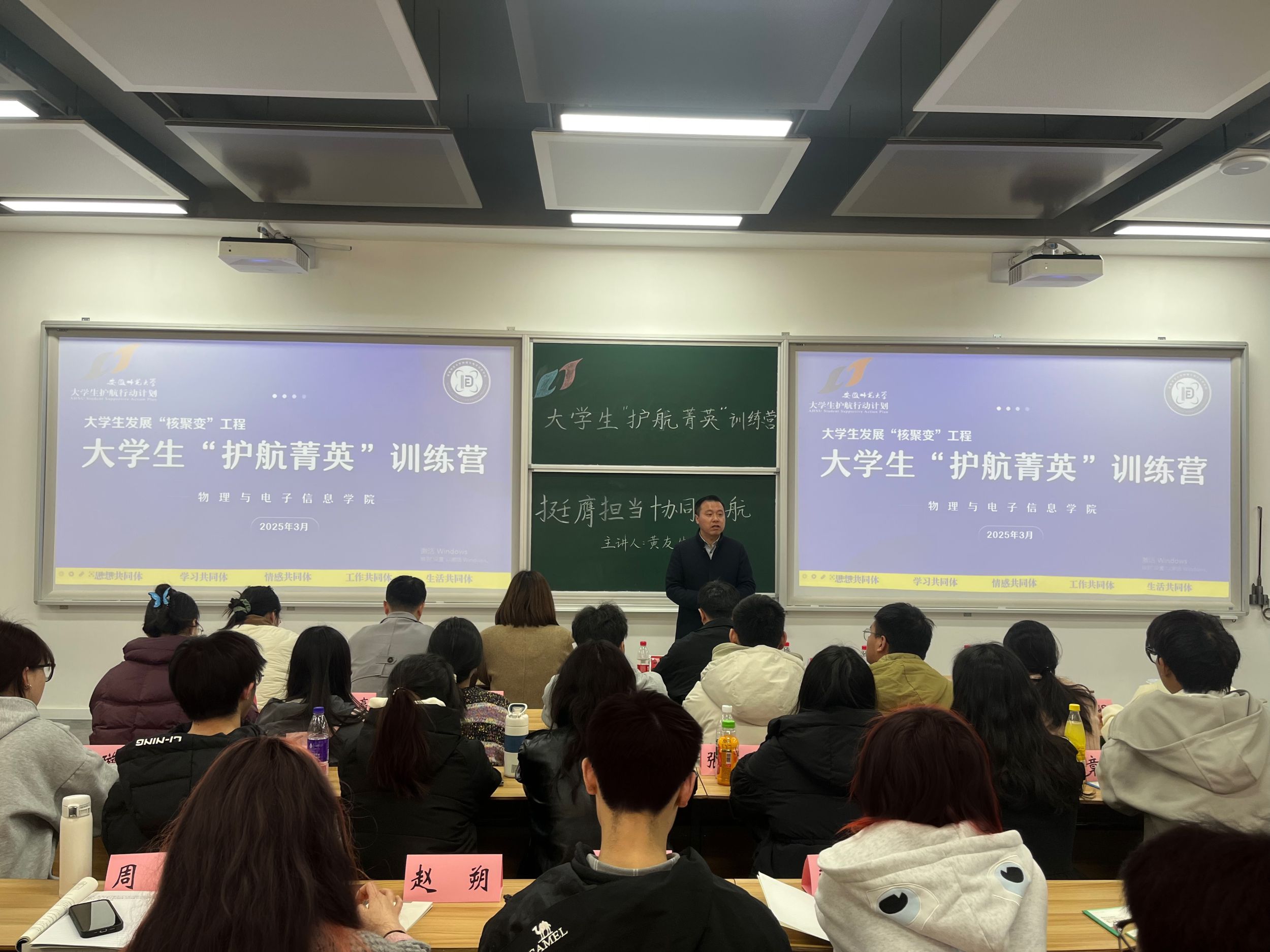 大学生发展“核聚变”工程之2024-2025学年大学生“护航菁英”训练营正式开班。学院全体专兼职辅导员,团委、学生会工作人员,社团负责人,院研会主席团成员,2023级,2024级各班班长、团支书、心理委员参加培训。