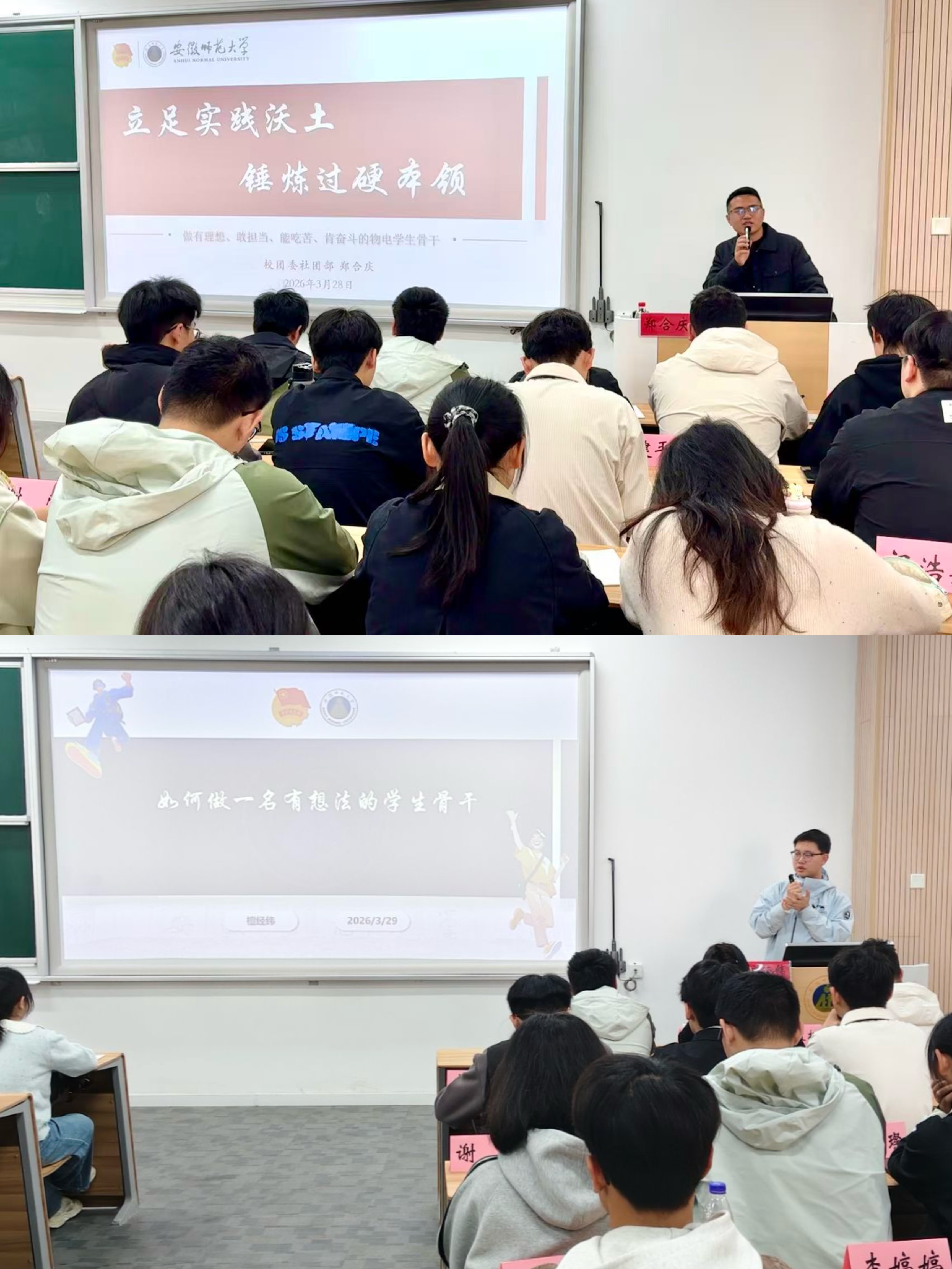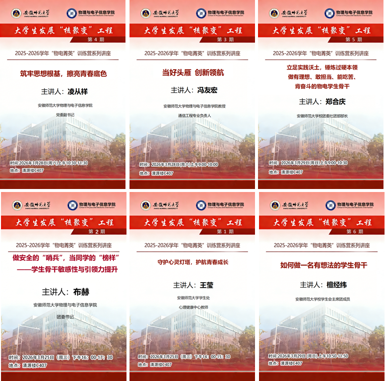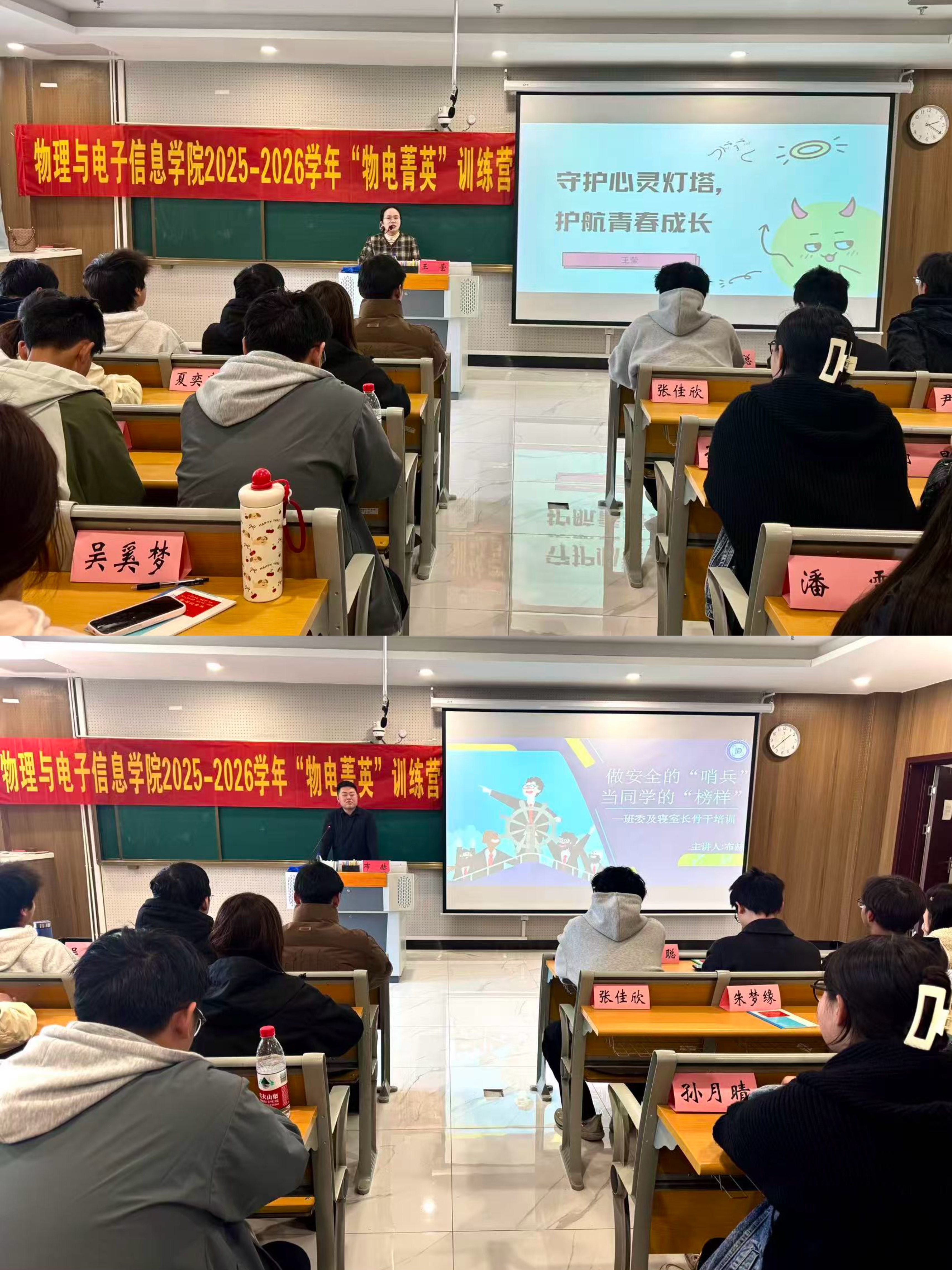 组织开展2025-2026学年“物电菁英”学生骨干培训班。学院团委、学生会、研究生会工作人员,各社团负责人,2024级、2025级各班班长、团支书、心理委员、寝室长等参加培训。