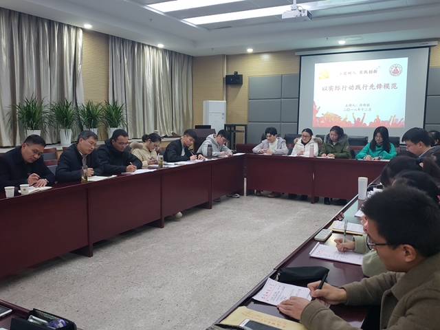 课上,许新胜代表学院党委紧紧围绕“以实际行动践行先锋模范”的主题,结合实时政事,为与会同学上了一堂生动精彩的“微型”党课。许新胜强调,要成为一名优秀的党员,全体支部成员必须时刻以党员身份严格要求自己,要在思想、学习和工作上发挥先锋模范作用:在思想上,要坚定理想信念,在坚持对马克思主义的信仰基础上,紧密联系生活实际,将理想信念落实到实践中;在学习上,要充分发挥学生党员的先进性,勤奋刻苦,积极求索,为身边同学做好表率;在工作上,要树立全心全意为人民服务的宗旨,主动培养奉献意识,积极为同学服务,共创良好班风。此外,许新胜也主动关心发展对象学生的学习情况,明确提出了考研、考级、考证、竞赛的相关要求,鼓励同学们在实践中学习,在奋斗中成长。