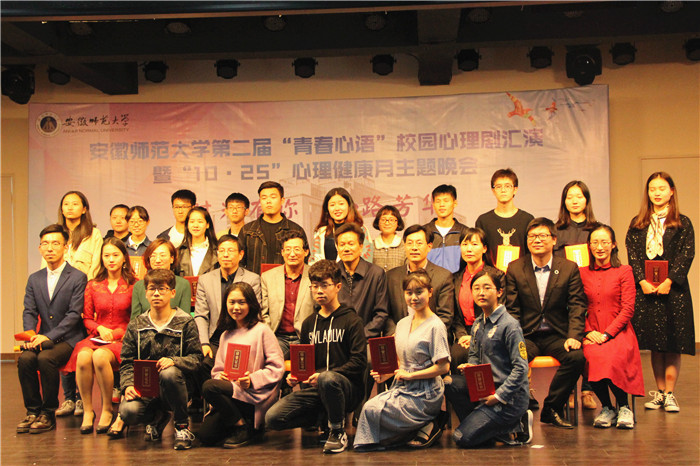 聂余 喻晓萌)10月23日晚7点,校第二届“青春心语”校园心理剧汇演暨“10·25”心理健康月主题晚会在团委多功能报告厅如期举行。副校长毕明福亲临活动现场担任主任评委并为获奖单位颁奖。芜湖市第四人民医院副院长蔡昌群教授、皖南医学院应用心理学学硕学位、应用心理学专业学位硕士点负责人杭荣华教授、我校教育科学学院院长桑青松教授、学生工作处处长刘晓宇、团委书记梁燕应邀担任评委。各学院发展辅导站负责人、心理剧指导老师代表、新任专兼职辅导员、2018级学生代表共200余人现场观看汇演。