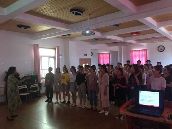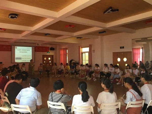 此次培训期间,共有四支团队,蓝宝城幼儿园,东方明珠幼儿园,实习老师和安师大实践团队。在简单地说明了本次培训的流程和时间安排之后,队员们和老师一起开始了每日日常——律动和唱歌。培训老师介绍了和晟教育理念——生命教育的精华“幼儿园生态发展系统”三个阶段——幼儿教学,教师成长和家长教育(后者被安排在开学初期),而实践队次次学习主要目的是参与主第二阶段的关于教师成长部分。