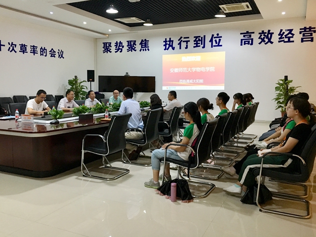 秦建)7月19日,学院党委副书记吴长义,电子专业负责人高伟,授课教师甘露,团委负责人宋凤楼前往合肥通威太阳能公司慰问实践队员,并与企业管理人员就校企合作、实习就业等工作进行了座谈。