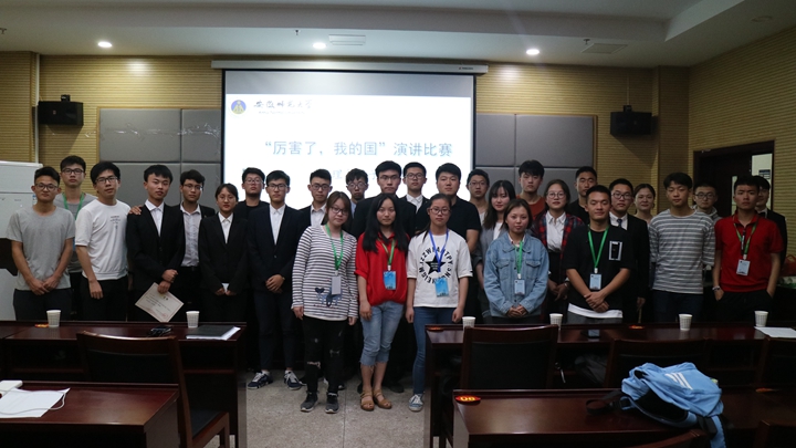 于物理楼335会议室开展“厉害了,我的国”演讲比赛。本次比赛由院学生会女生部主办,学生会指导老师张杰,辅导员秦瑾琼、许晨晨,学生会主席余亮等人受邀担任本次比赛评委。