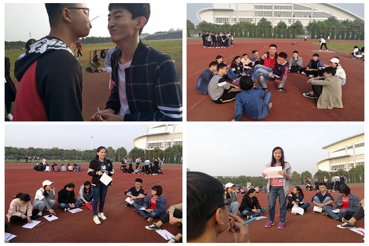 心晴工作室与校心理健康教育中心合作的主题为“认知·感恩·接纳”的团体辅导活动于花津校区南体育场开展。此次活动以游戏为主体,形式别具一格,内容新颖有趣,富有吸引力,活动由辅导员秦瑾琼和聂余带领,64名在2016级招募的队员参加此次活动。